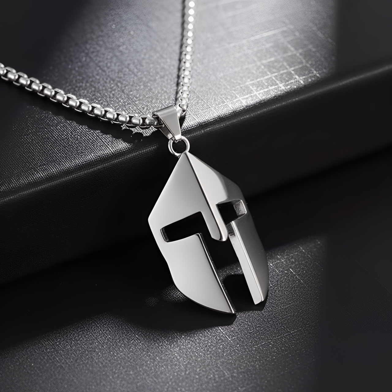 Este colgante está inspirado en el casco de tipo Corinto, una de las piezas más reconocibles del hoplita griego.